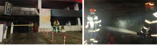 La sosirea echipajelor de pompieri, acestea au constatat faptul că incendiul se manifesta la parterul parcării, la un autoturism parcat, cu degajări mari de fum.